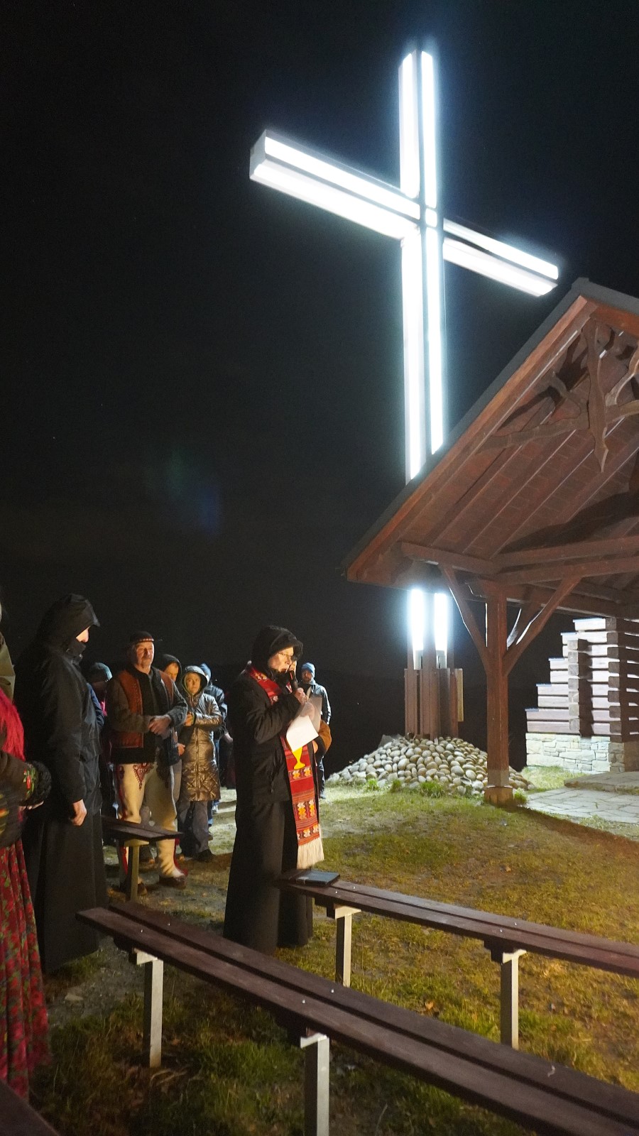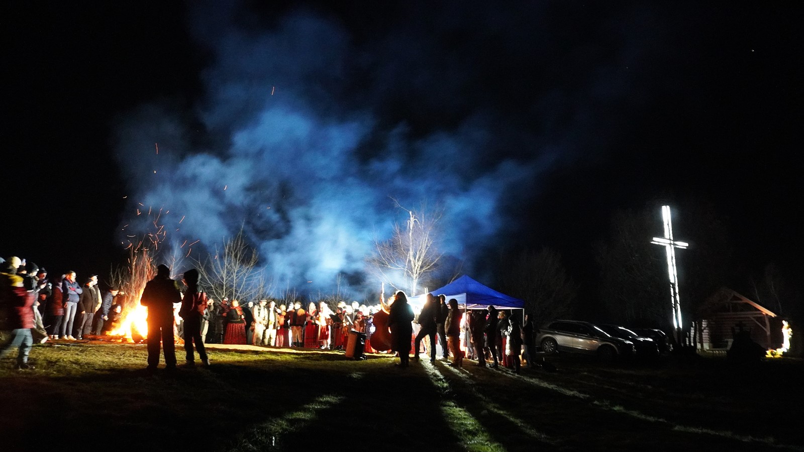 Następnie rozpalono watrę pamięci i odśpiewano pieśni maryjne i te związane z postacią Papieża Polaka. Oprawę muzyczną zapewniła kapela działająca przy Związku Podhalan Oddział w Młyńczyskach.