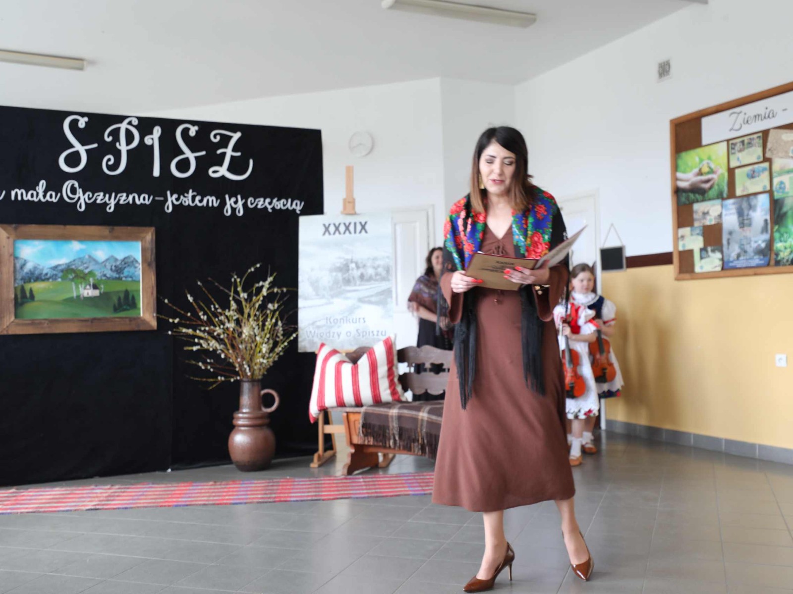 Po krótkim występie artystycznym rozpoczęła się główna część wydarzenia – test wiedzy o regionie. Uczniowie musieli wykazać się znajomością historii, kultury, tradycji i geografii Spisza. Po teście odbył się konkurs recytatorski, który dostarczył wielu emocji zarówno uczestnikom, jak i publiczności. Recytatorzy, ubrani w tradycyjne stroje spiskie, prezentowali gawędy oraz wiersze, ukazując piękno i różnorodność lokalnej twórczości.