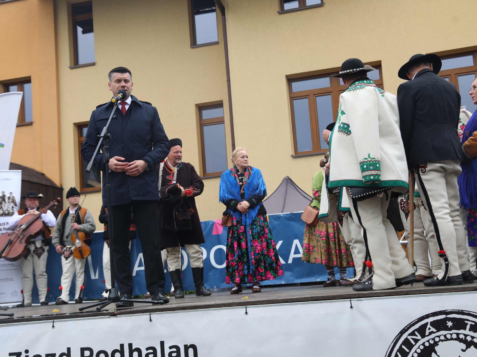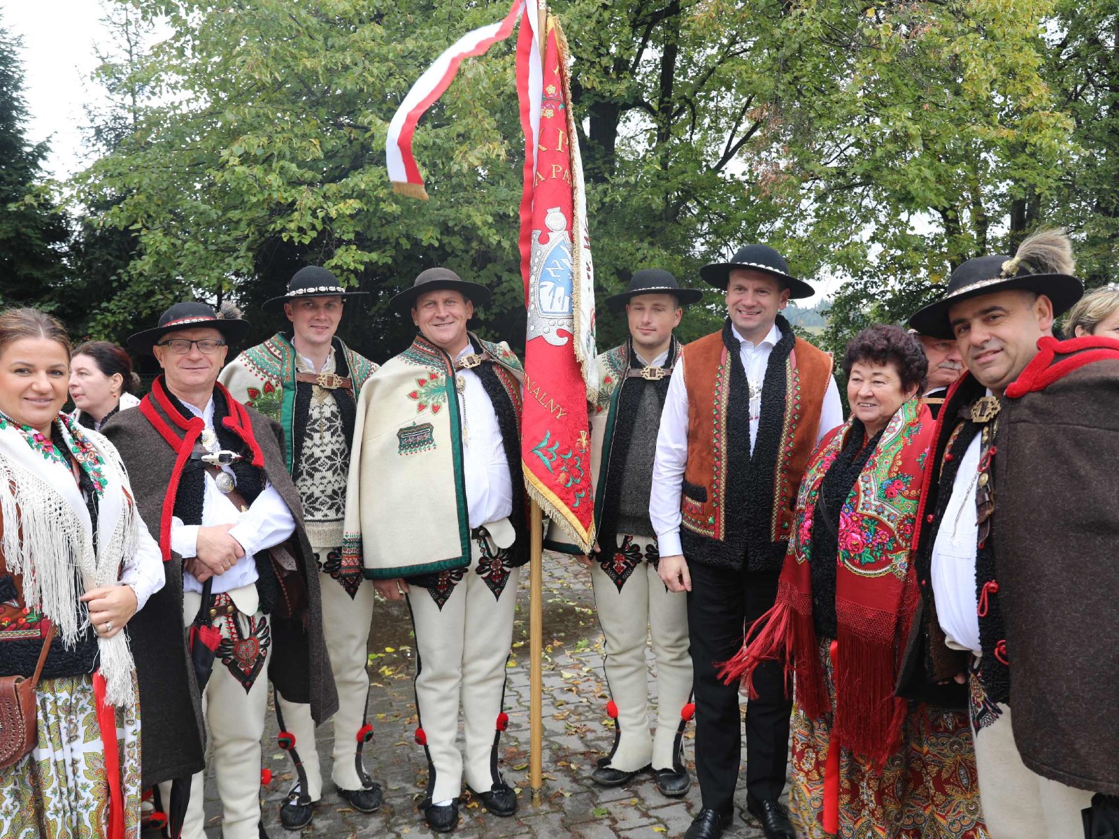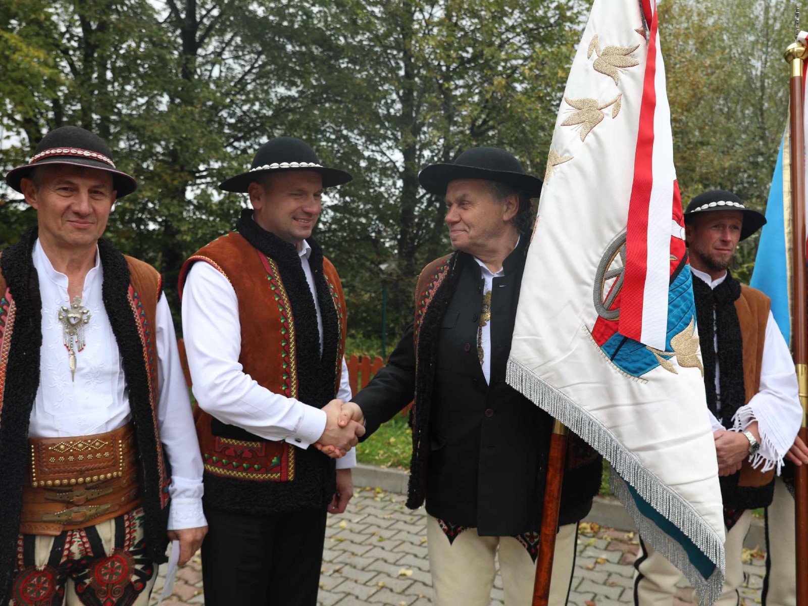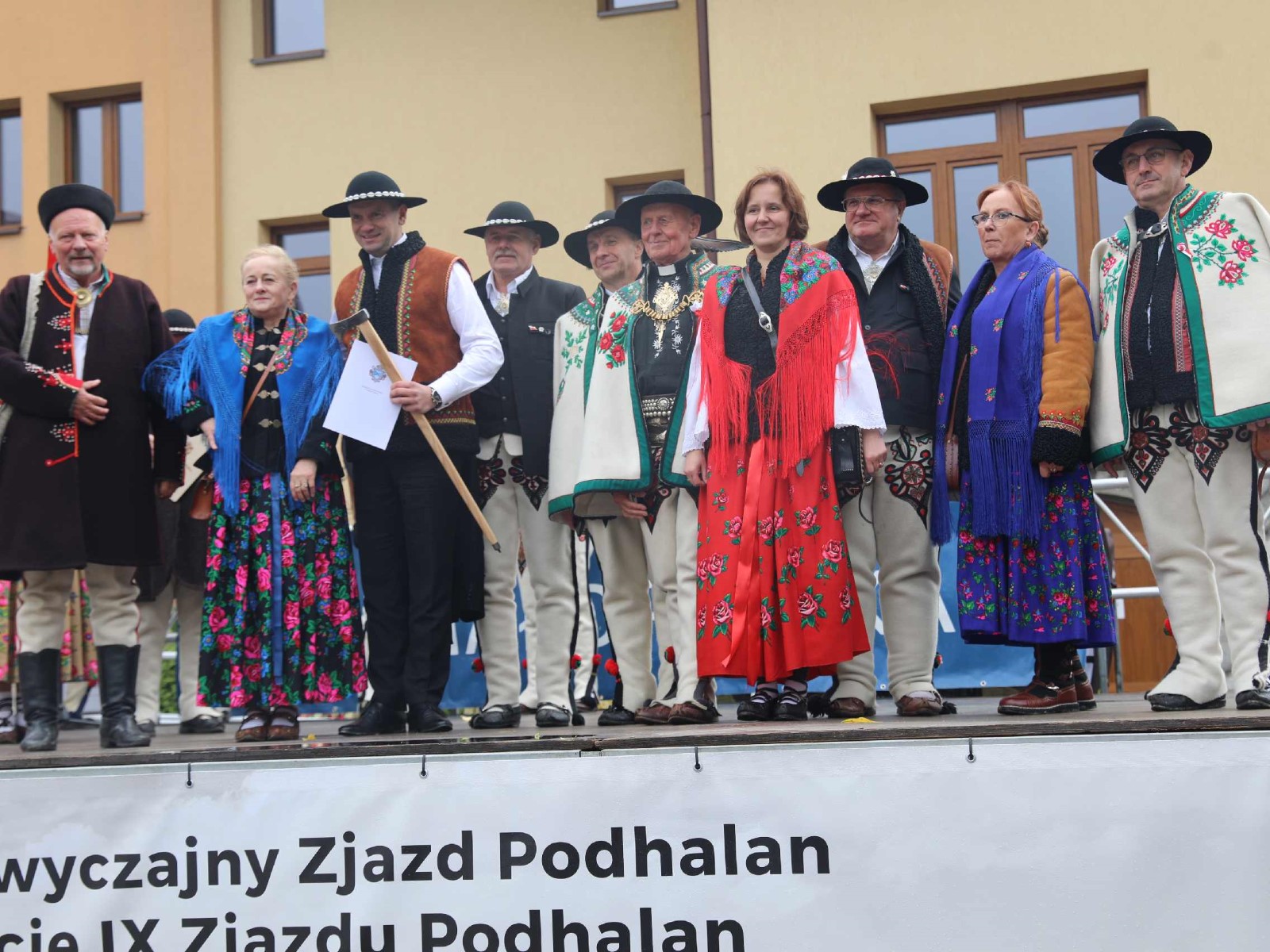 Po uroczystej mszy św. na placu szkoły podstawowej, podobnie jak 100 lat temu, odbyła się oficjalna część jubileuszu Zjazdu Podhalan w Bukowinie T. Głos zabrali: gość honorowy Marszałek Województwa Małopolskiego Łukasz Smółka, prezes ZG Związku Podhalan w Polsce Julian Kowalczyk, przewodniczący Rady Naukowej przy Związku Podhalan prof. Stanisław Hodorowicz, prezes Związku Polskiego Spisza Jan Budz. Przedstawiciel zasłużonej rodziny Ćwiżewiczów otrzymał z rak prezesa ZP symboliczne eptitafium (pośmiertne wyróżnienie za działalność na rzecz promocji regionu). Z kolei w dowód uznania za zaangażowanie Urzędu Marszałkowskiego za wspieranie i promowanie polskiej góralszczyzny Marszałek Smółka otrzymał od ZP góralski serdak i i kilka innych części góralskiego uposażenia. Zanim w barwnym korowodzie uczestnicy Zjazdu udali się do Domu Ludowego w Bukowinie T. Marszałek Ł. Smółka zapozował do pamiątkowej fotografii z naszymi pocztami sztandarowymi.