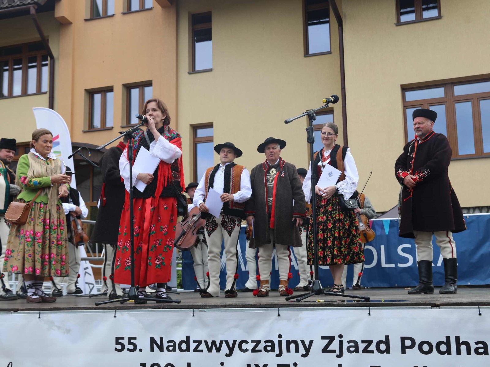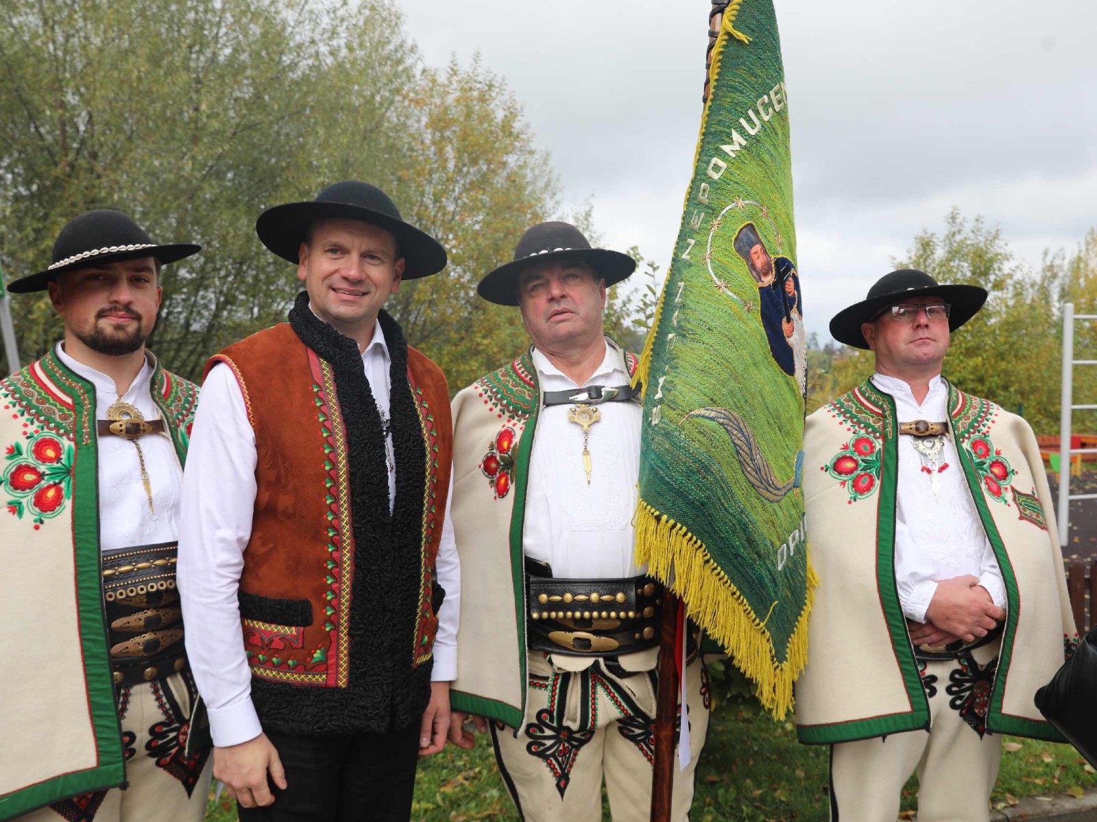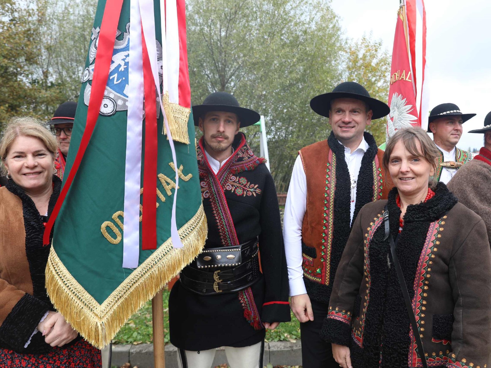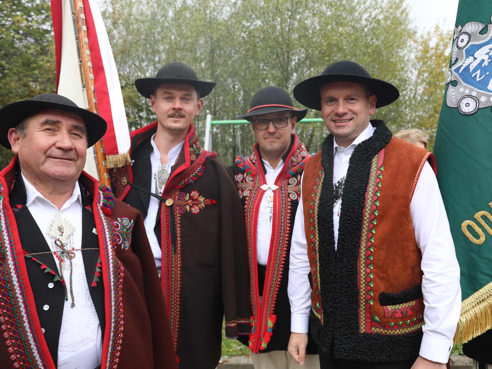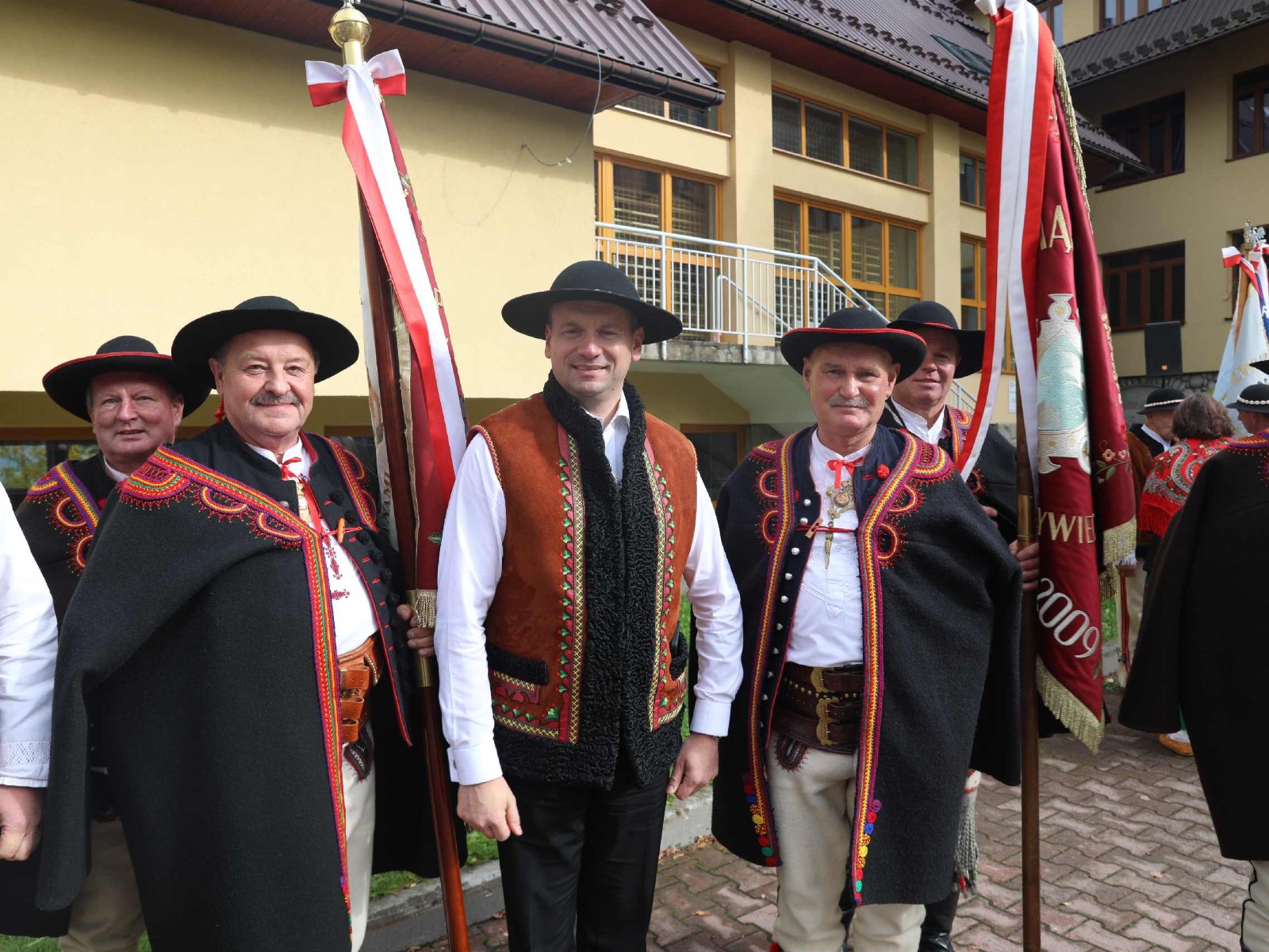 Po uroczystej mszy św. na placu szkoły podstawowej, podobnie jak 100 lat temu, odbyła się oficjalna część jubileuszu Zjazdu Podhalan w Bukowinie T. Głos zabrali: gość honorowy Marszałek Województwa Małopolskiego Łukasz Smółka, prezes ZG Związku Podhalan w Polsce Julian Kowalczyk, przewodniczący Rady Naukowej przy Związku Podhalan prof. Stanisław Hodorowicz, prezes Związku Polskiego Spisza Jan Budz. Przedstawiciel zasłużonej rodziny Ćwiżewiczów otrzymał z rak prezesa ZP symboliczne eptitafium (pośmiertne wyróżnienie za działalność na rzecz promocji regionu). Z kolei w dowód uznania za zaangażowanie Urzędu Marszałkowskiego za wspieranie i promowanie polskiej góralszczyzny Marszałek Smółka otrzymał od ZP góralski serdak i i kilka innych części góralskiego uposażenia. Zanim w barwnym korowodzie uczestnicy Zjazdu udali się do Domu Ludowego w Bukowinie T. Marszałek Ł. Smółka zapozował do pamiątkowej fotografii z naszymi pocztami sztandarowymi.
