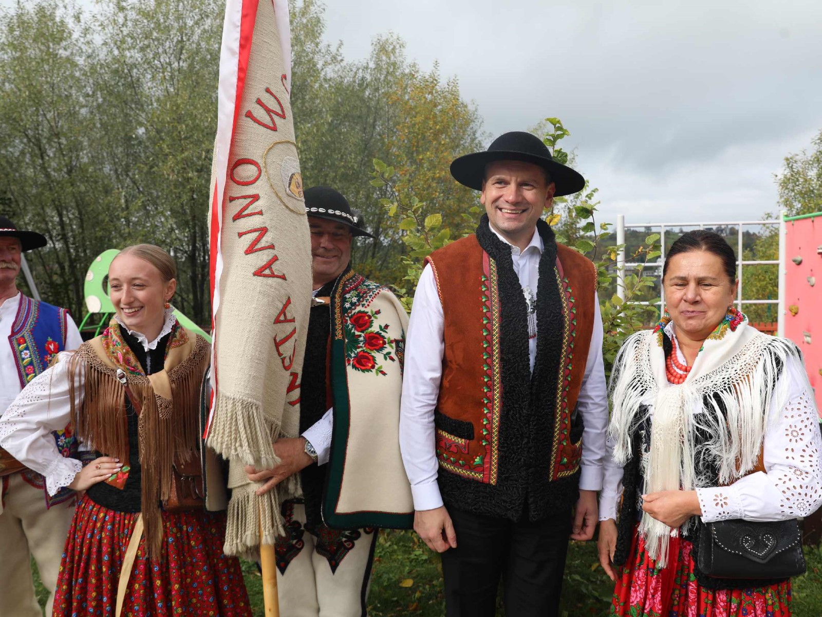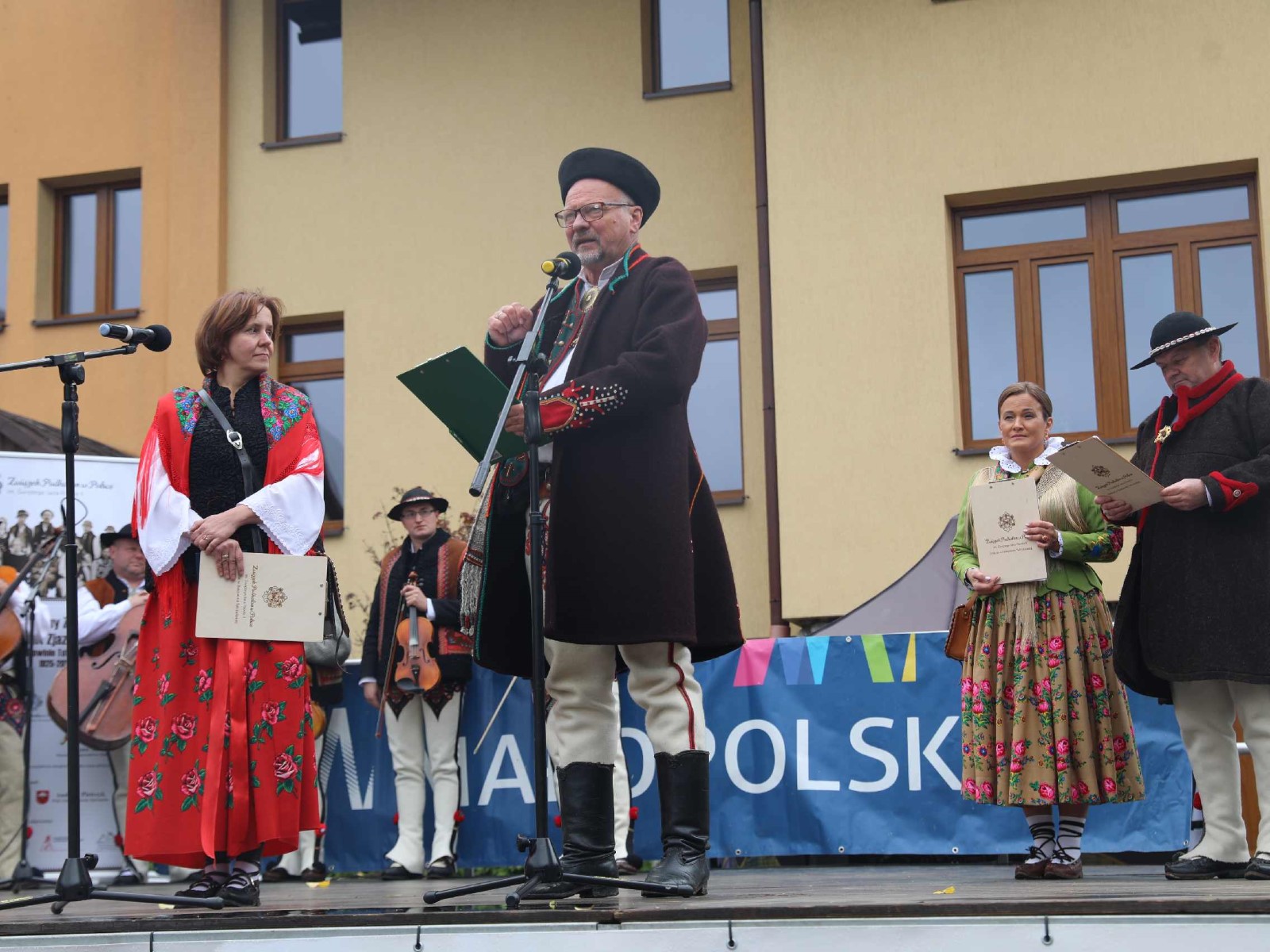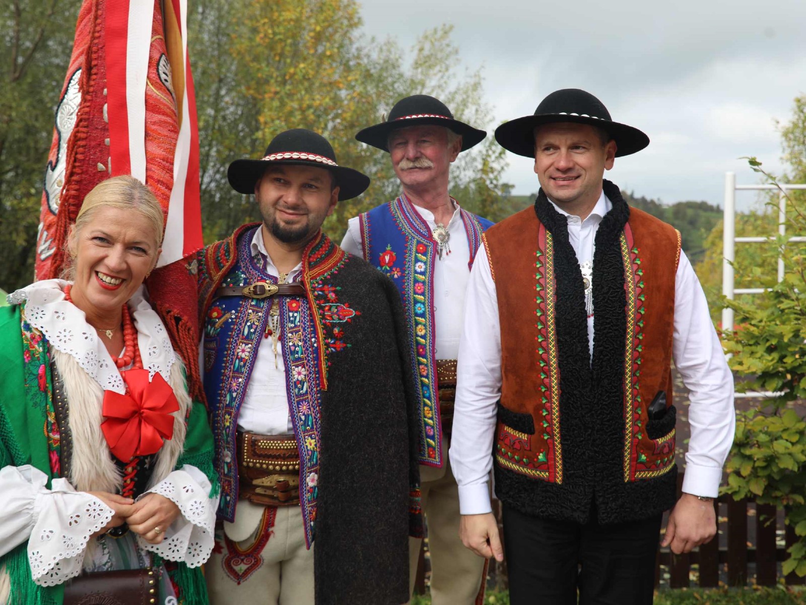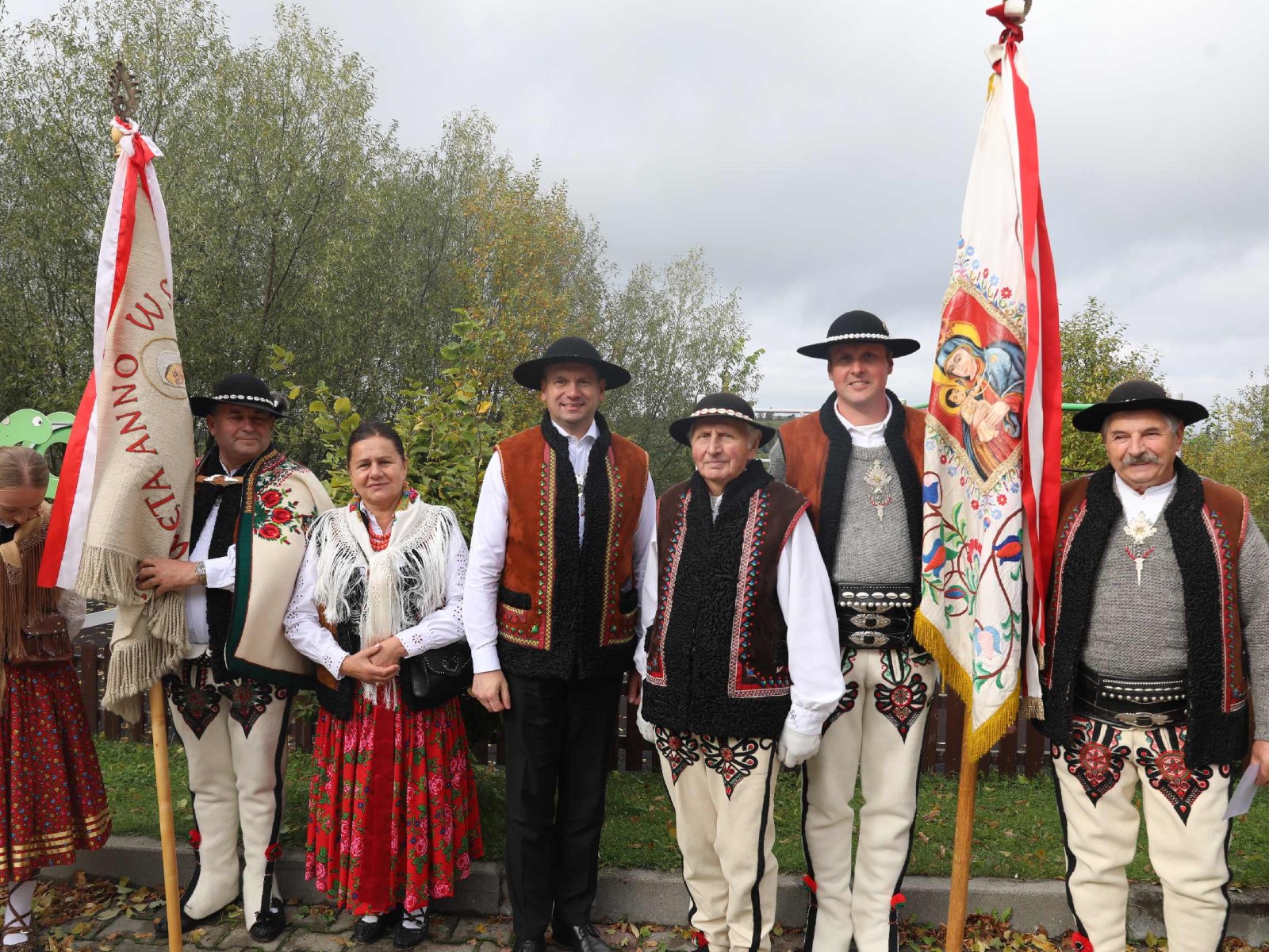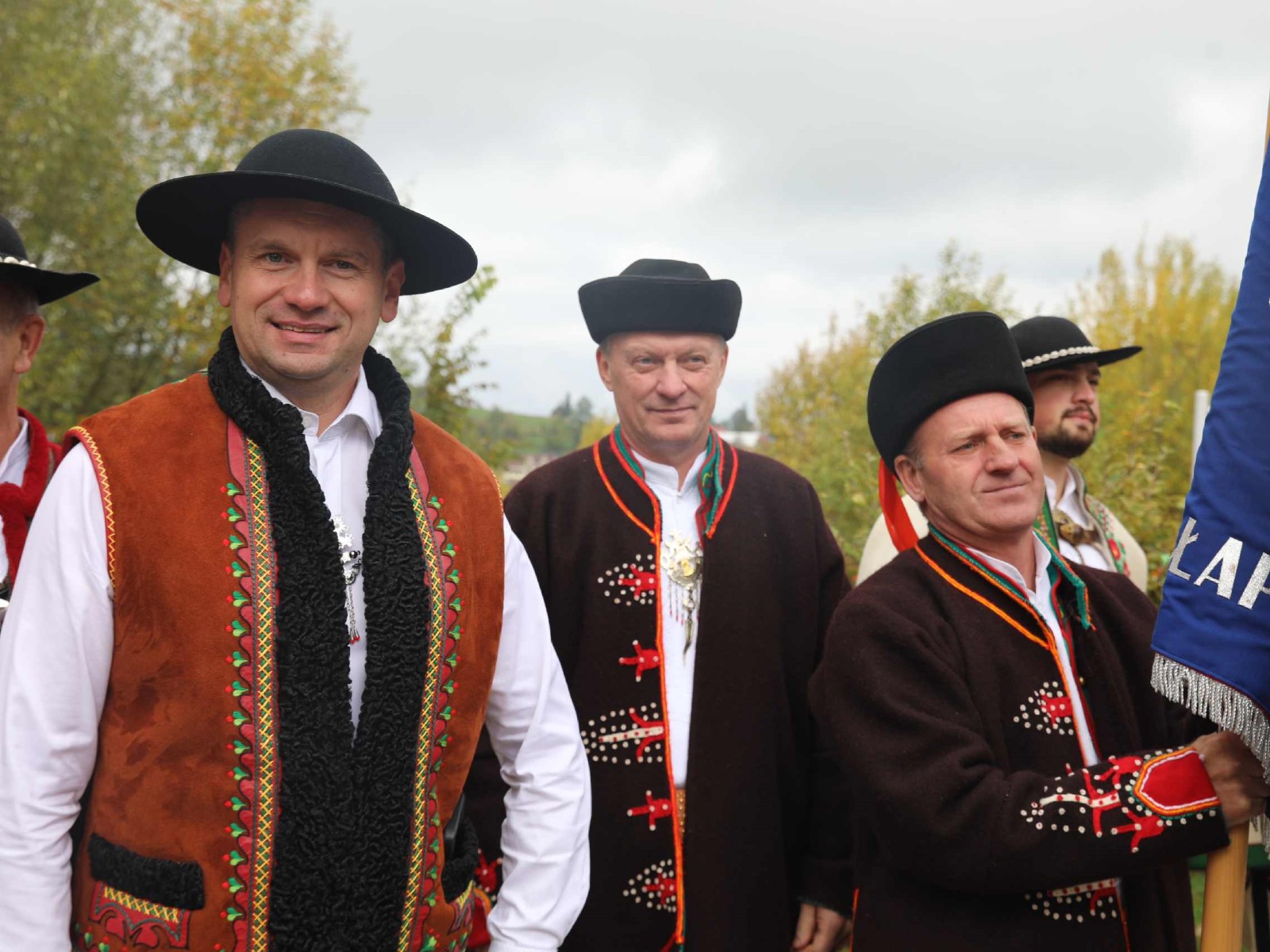 Po uroczystej mszy św. na placu szkoły podstawowej, podobnie jak 100 lat temu, odbyła się oficjalna część jubileuszu Zjazdu Podhalan w Bukowinie T. Głos zabrali: gość honorowy Marszałek Województwa Małopolskiego Łukasz Smółka, prezes ZG Związku Podhalan w Polsce Julian Kowalczyk, przewodniczący Rady Naukowej przy Związku Podhalan prof. Stanisław Hodorowicz, prezes Związku Polskiego Spisza Jan Budz. Przedstawiciel zasłużonej rodziny Ćwiżewiczów otrzymał z rak prezesa ZP symboliczne eptitafium (pośmiertne wyróżnienie za działalność na rzecz promocji regionu). Z kolei w dowód uznania za zaangażowanie Urzędu Marszałkowskiego za wspieranie i promowanie polskiej góralszczyzny Marszałek Smółka otrzymał od ZP góralski serdak i i kilka innych części góralskiego uposażenia. Zanim w barwnym korowodzie uczestnicy Zjazdu udali się do Domu Ludowego w Bukowinie T. Marszałek Ł. Smółka zapozował do pamiątkowej fotografii z naszymi pocztami sztandarowymi.