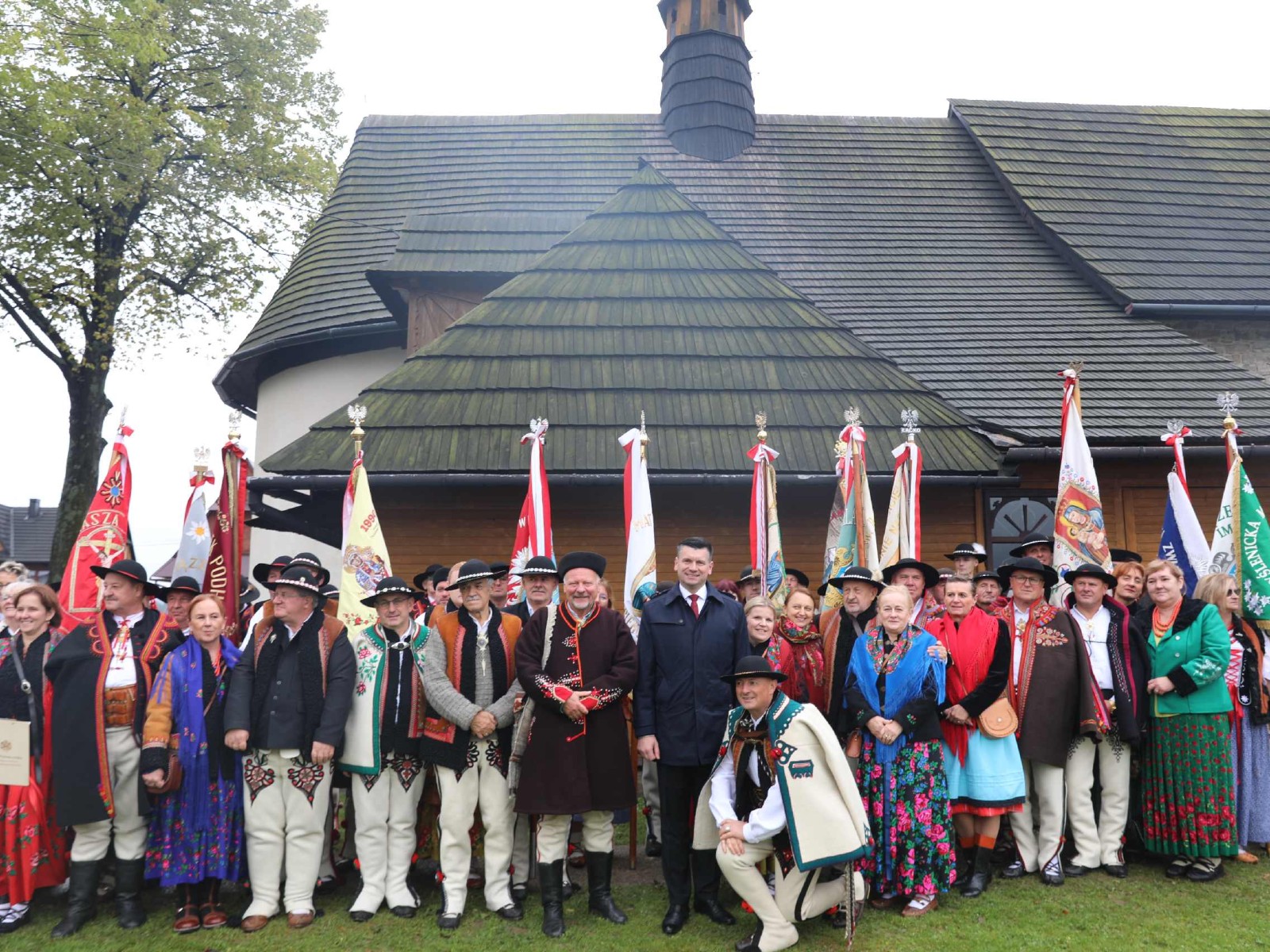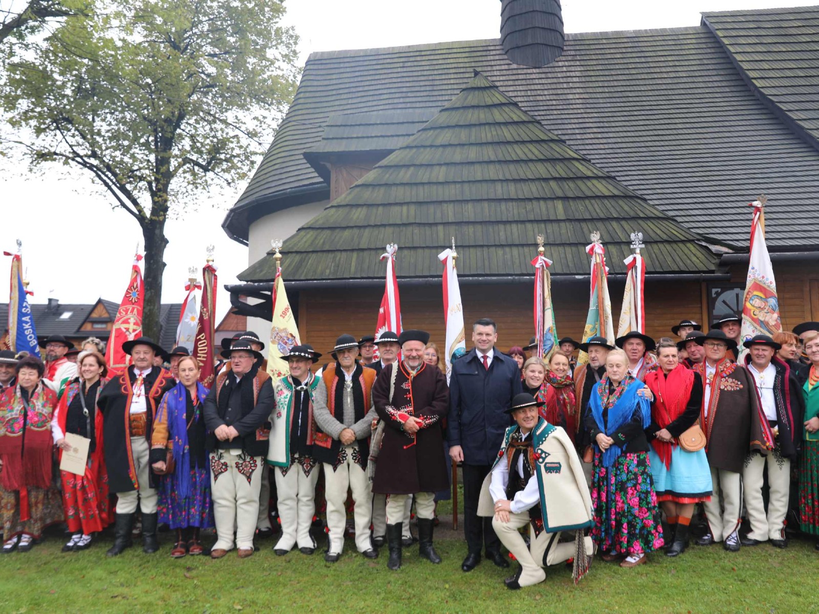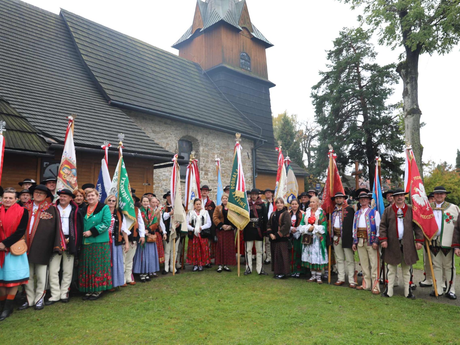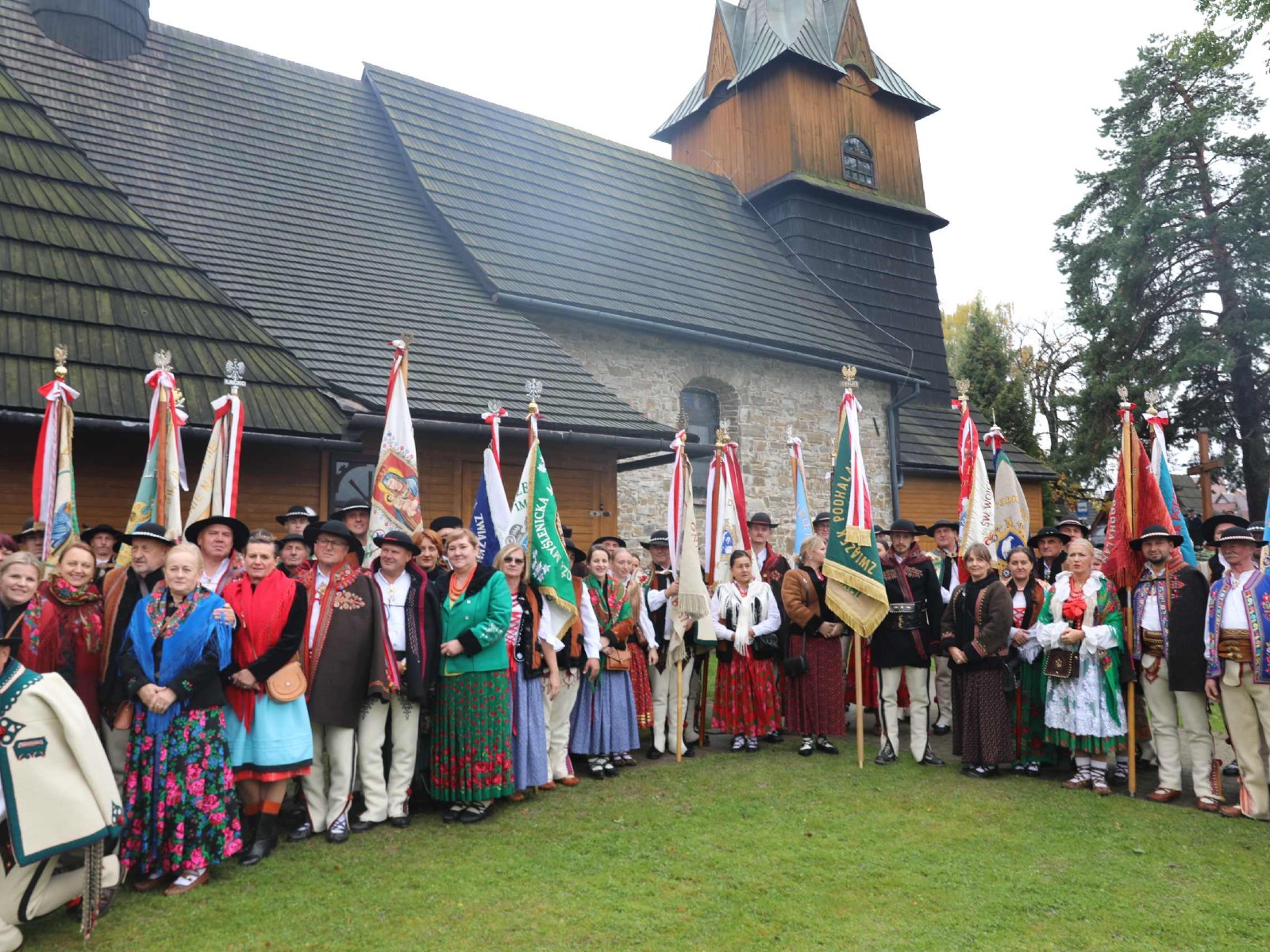 Uroczystości 55 Zjazdu Podhalan rozpoczęliśmy 12.10.25r. od złożenia wiązanki i zapalenia zniczy na grobach zasłużonych działaczy ZP pochowanych na cmentarzu w Bukowinie T. Oprawę koncelebrowanej mszy świętej zapewnili liczne poczty sztandarowe ZP, poczet sztandarowy Związku Polskiego Spisza, miejscowej Szkoły podstawowej oraz kapela góralska z Bukowiny i orkiestra dęta z Łapsz Niżnych na Spiszu. Homilię wygłosił kapelan ZG ZP ks. Jan Gacek, zaś słowo do uczestników Zjazdu skierowali miejscowy ksiądz i kapelan ZP ks. Władysław Zązel. Po mszy świętej oczywiście pamiątkowe zdjęcie na tle nowego i starego kościoła.