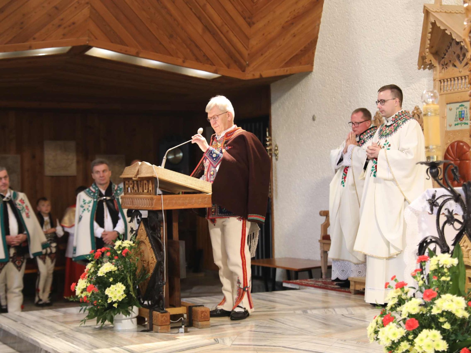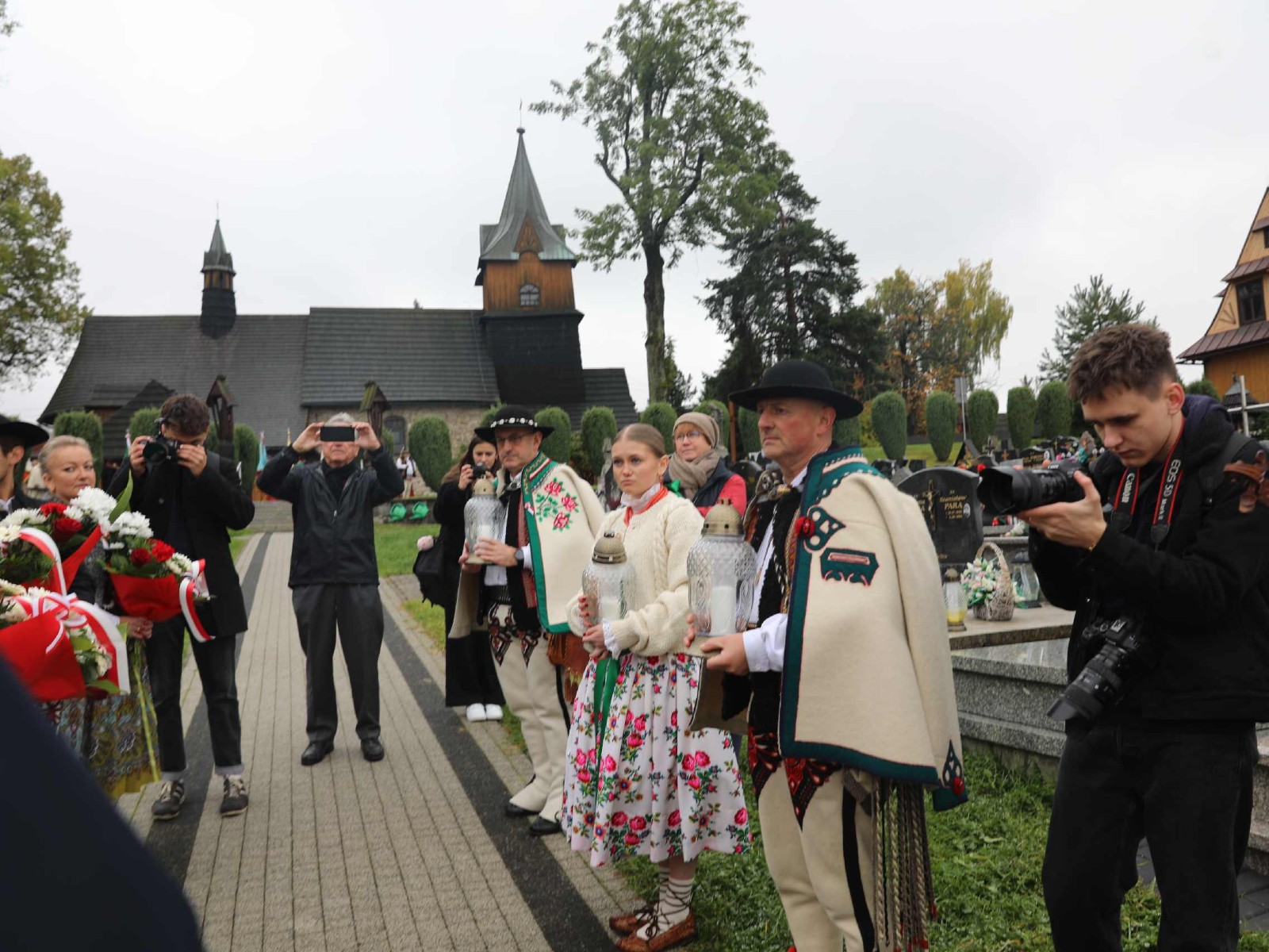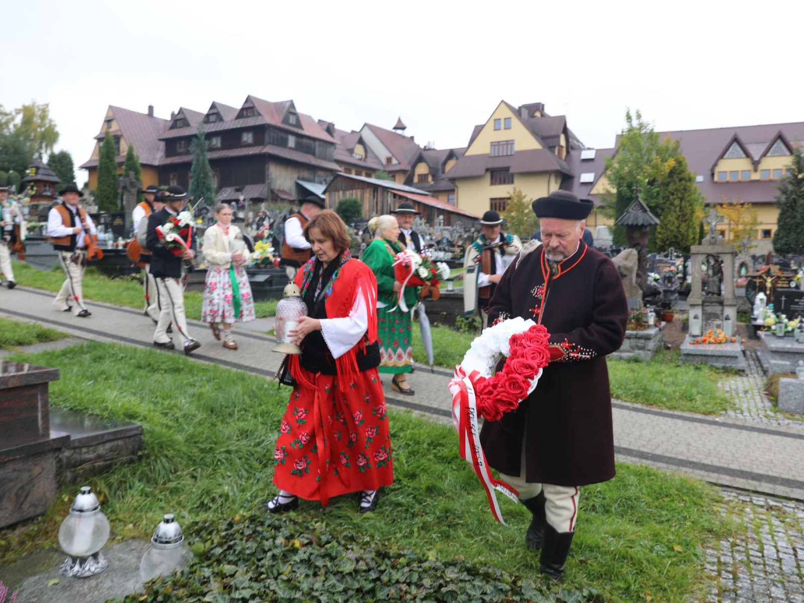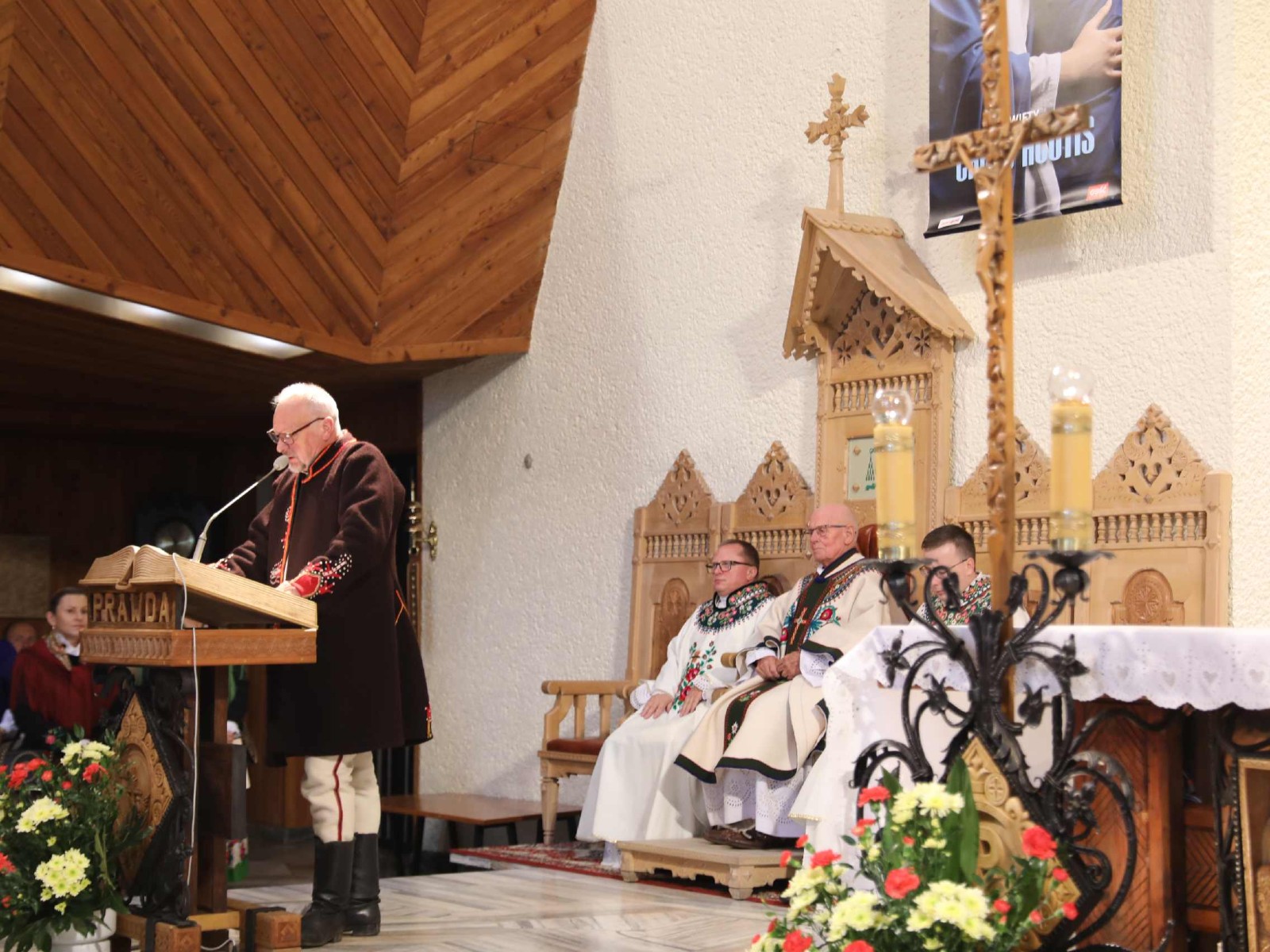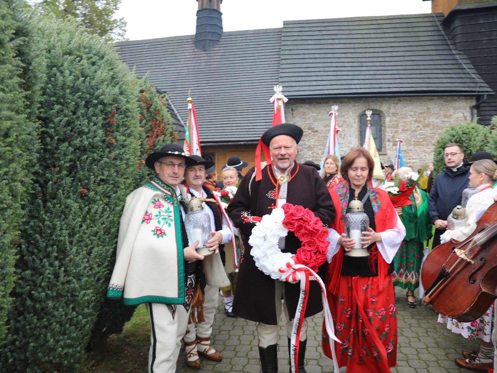Uroczystości 55 Zjazdu Podhalan rozpoczęliśmy 12.10.25r. od złożenia wiązanki i zapalenia zniczy na grobach zasłużonych działaczy ZP pochowanych na cmentarzu w Bukowinie T. Oprawę koncelebrowanej mszy świętej zapewnili liczne poczty sztandarowe ZP, poczet sztandarowy Związku Polskiego Spisza, miejscowej Szkoły podstawowej oraz kapela góralska z Bukowiny i orkiestra dęta z Łapsz Niżnych na Spiszu. Homilię wygłosił kapelan ZG ZP ks. Jan Gacek, zaś słowo do uczestników Zjazdu skierowali miejscowy ksiądz i kapelan ZP ks. Władysław Zązel. Po mszy świętej oczywiście pamiątkowe zdjęcie na tle nowego i starego kościoła.