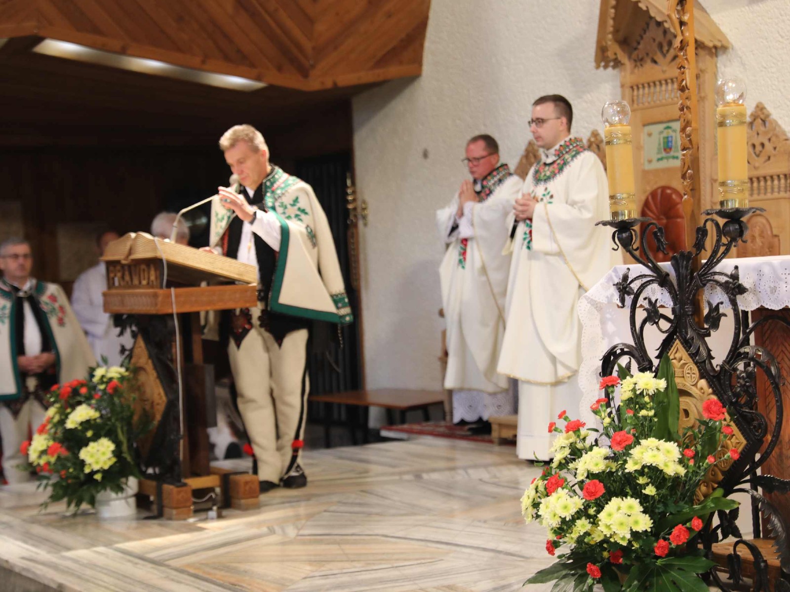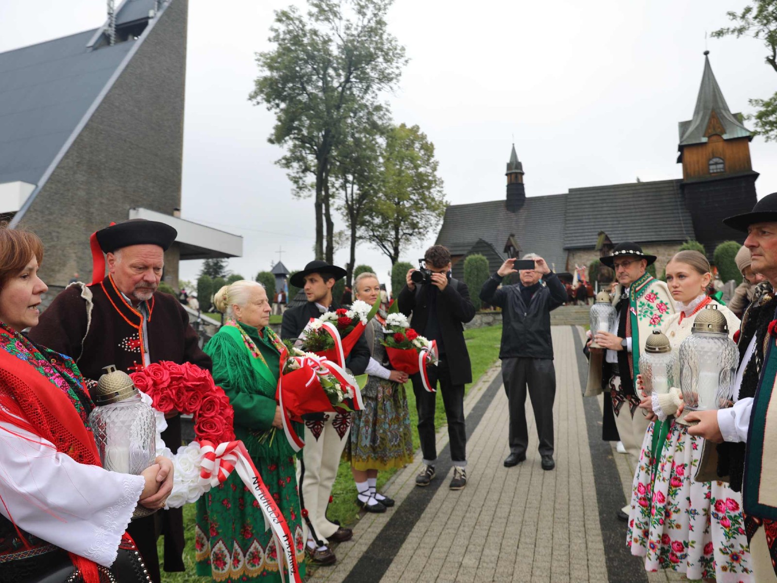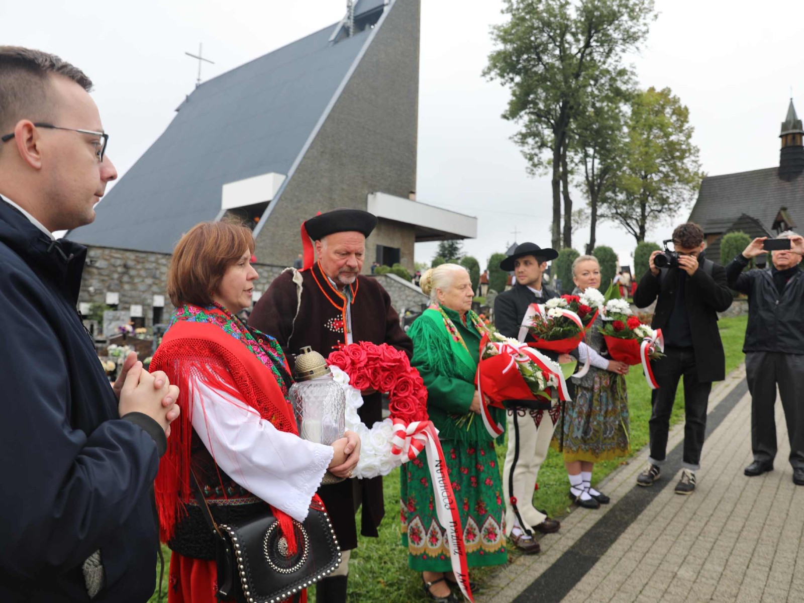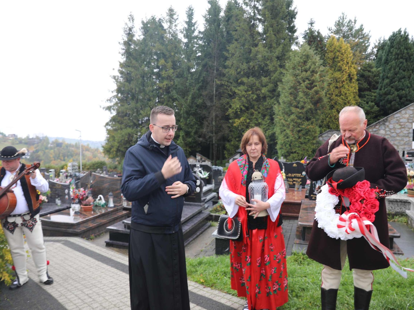 Uroczystości 55 Zjazdu Podhalan rozpoczęliśmy 12.10.25r. od złożenia wiązanki i zapalenia zniczy na grobach zasłużonych działaczy ZP pochowanych na cmentarzu w Bukowinie T. Oprawę koncelebrowanej mszy świętej zapewnili liczne poczty sztandarowe ZP, poczet sztandarowy Związku Polskiego Spisza, miejscowej Szkoły podstawowej oraz kapela góralska z Bukowiny i orkiestra dęta z Łapsz Niżnych na Spiszu. Homilię wygłosił kapelan ZG ZP ks. Jan Gacek, zaś słowo do uczestników Zjazdu skierowali miejscowy ksiądz i kapelan ZP ks. Władysław Zązel. Po mszy świętej oczywiście pamiątkowe zdjęcie na tle nowego i starego kościoła.