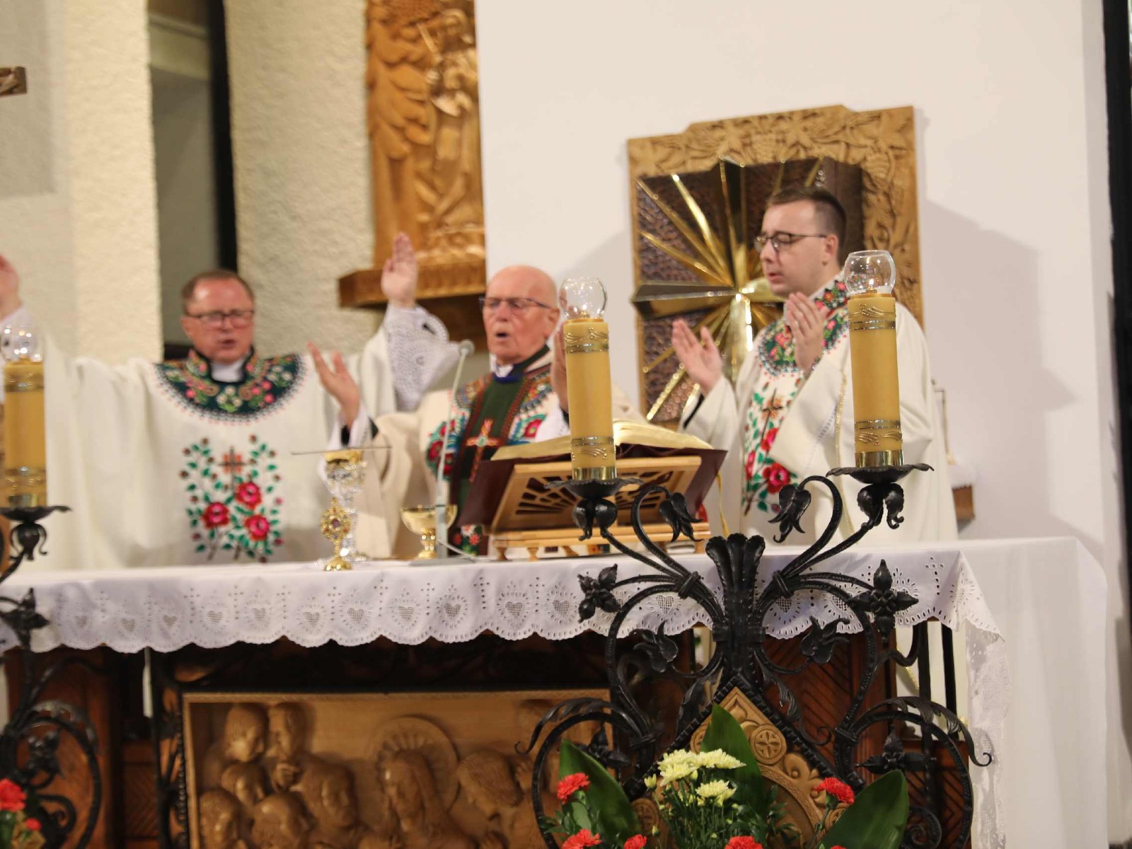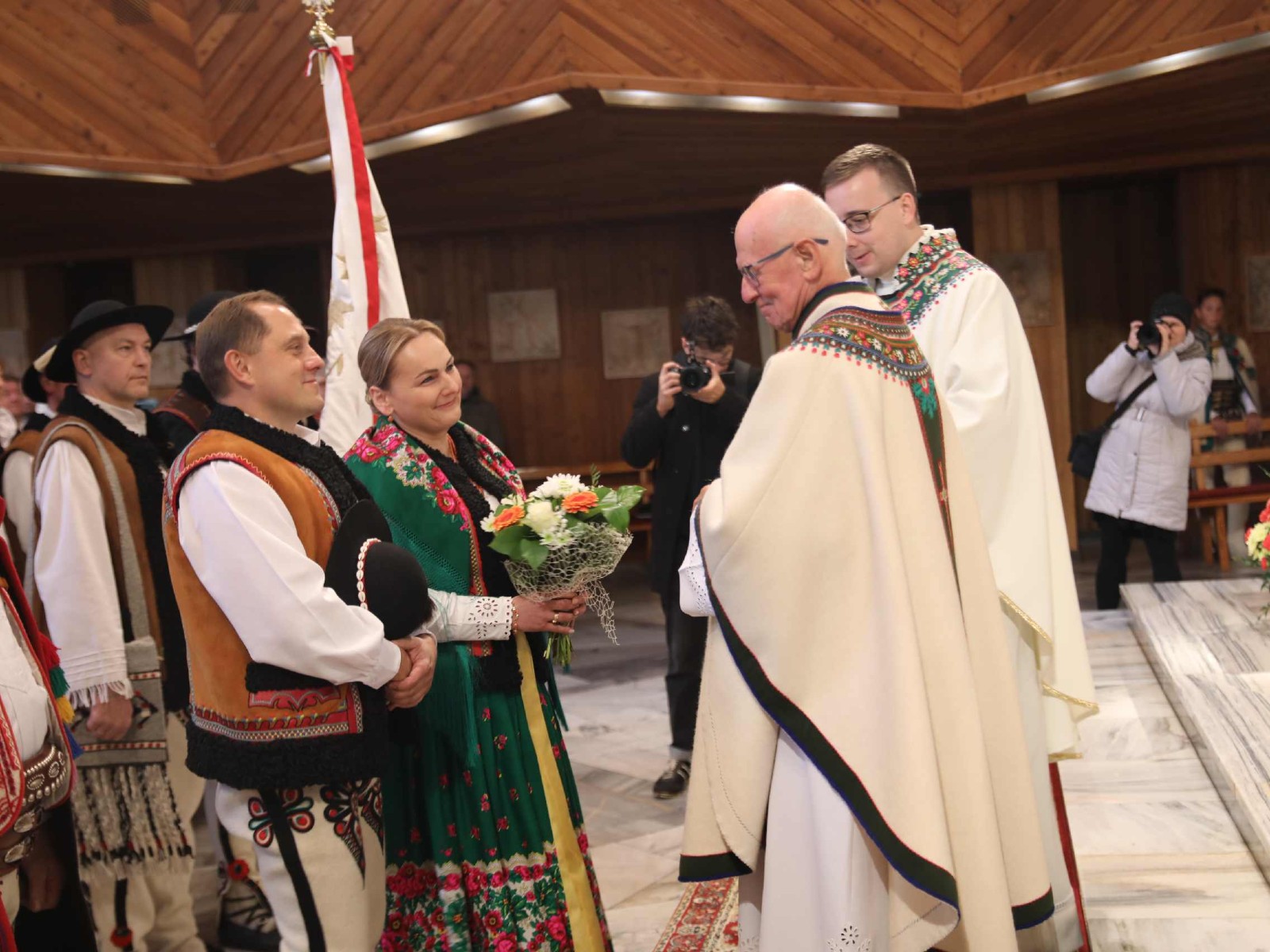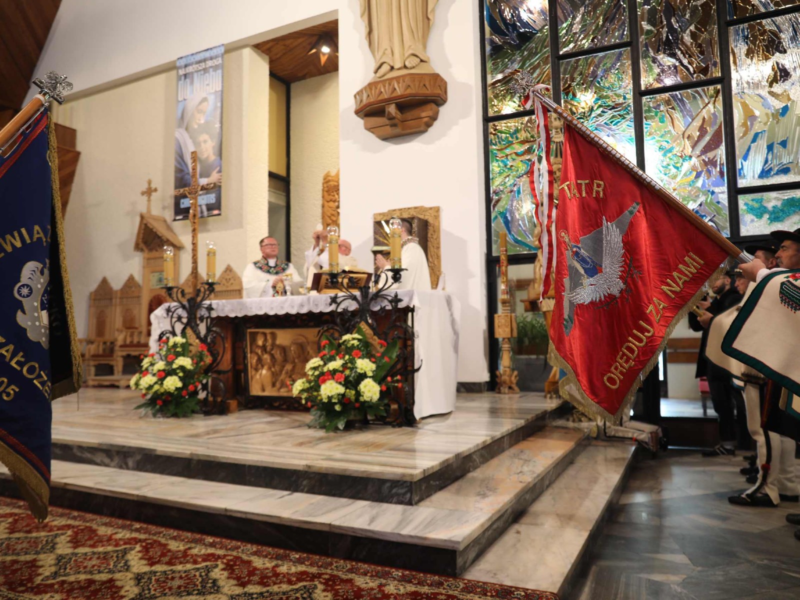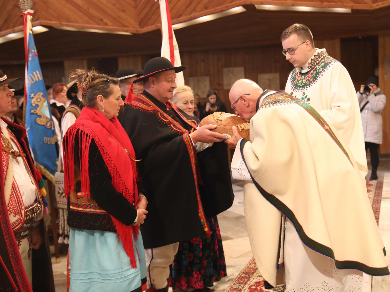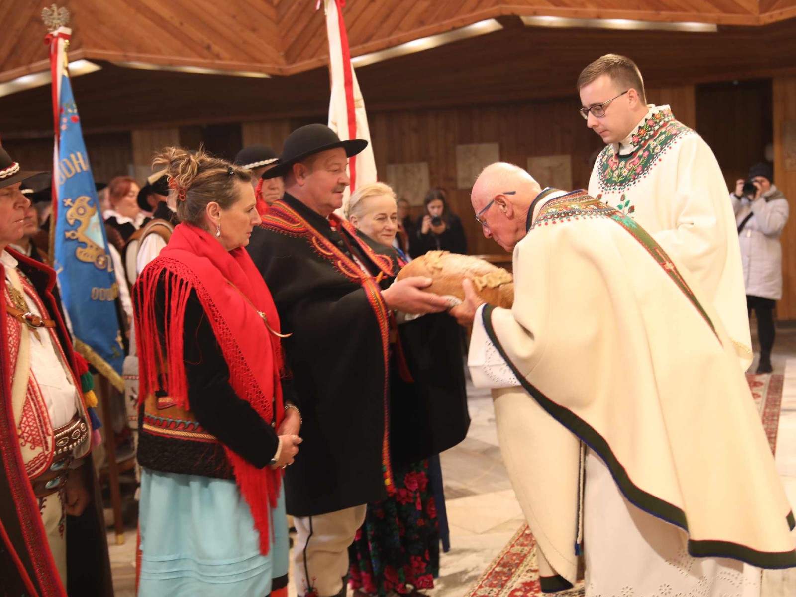 Uroczystości 55 Zjazdu Podhalan rozpoczęliśmy 12.10.25r. od złożenia wiązanki i zapalenia zniczy na grobach zasłużonych działaczy ZP pochowanych na cmentarzu w Bukowinie T. Oprawę koncelebrowanej mszy świętej zapewnili liczne poczty sztandarowe ZP, poczet sztandarowy Związku Polskiego Spisza, miejscowej Szkoły podstawowej oraz kapela góralska z Bukowiny i orkiestra dęta z Łapsz Niżnych na Spiszu. Homilię wygłosił kapelan ZG ZP ks. Jan Gacek, zaś słowo do uczestników Zjazdu skierowali miejscowy ksiądz i kapelan ZP ks. Władysław Zązel. Po mszy świętej oczywiście pamiątkowe zdjęcie na tle nowego i starego kościoła.