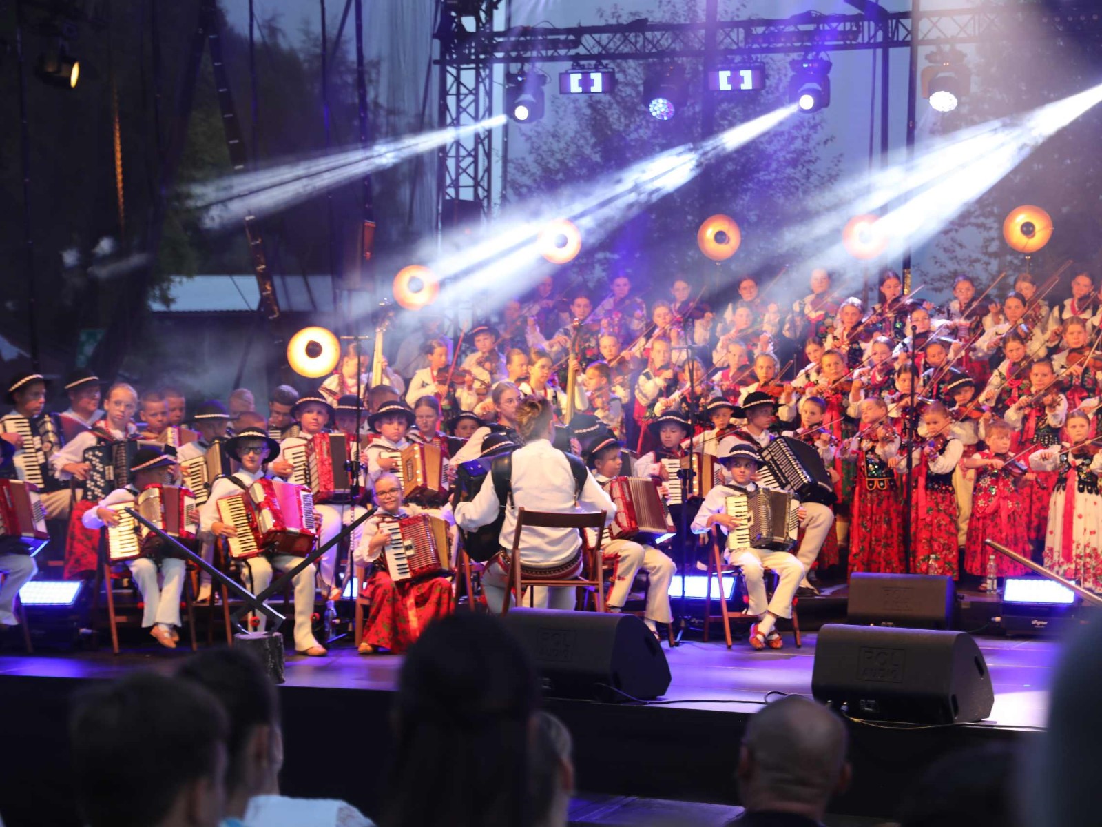 15 sierpnia wieczorem scena plenerowa obok Instytutu Dziedzictwa Niematerialnego Ludów Karpackich w Ludźmierzu zamieniła się w prawdziwe muzyczne misterium – na najwyższym poziomie integrujące tradycję i nowoczesność. Akademia Ciupaga — niemal 200-osobowy zespół muzyków z Łącka, od 5-dziesięciolatków — zaprezentowała niezwykle barwne widowisko pełne emocji i energii.