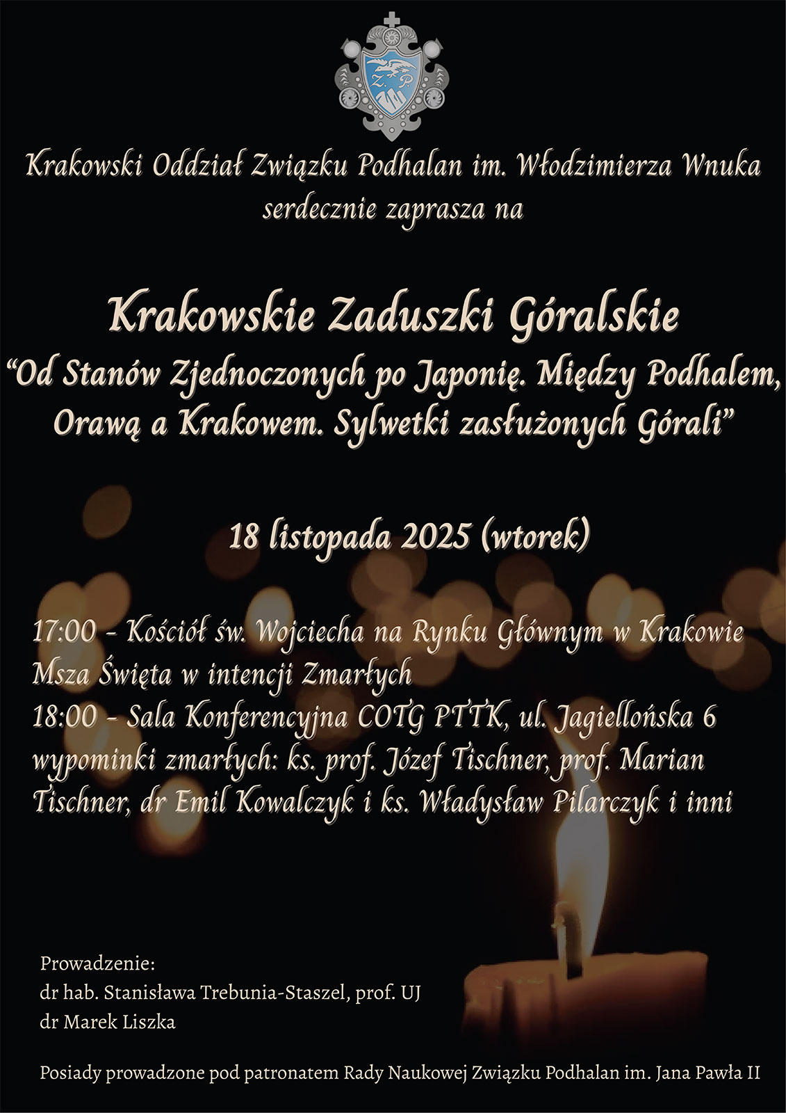17.00 Msza Święta za Zmarłych członków Krakowskiego Oddziału ZP, Zespołów Góralskich Skalni, Hamernik, Mali Hamernicy, Ludzi Gór, z Ich Rodzin. w kościele św. Wojciecha na rynku Głównym.