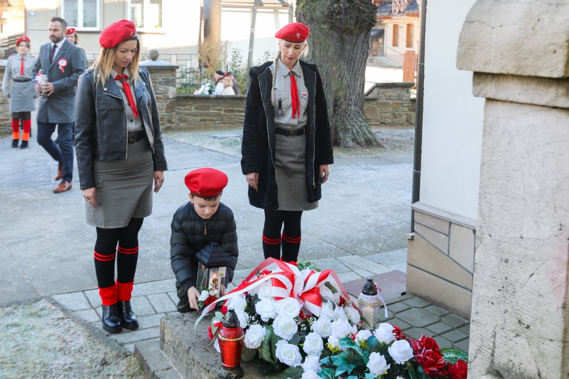 Ważnym momentem uroczystości było złożenie wiązanek kwiatów na grobie prof. Józefa Wiśmierskiego oraz pod tablicami upamiętniającymi bł. ks. Józefa Stanka i Wojciecha Halczyna. Był to symboliczny gest wdzięczności i pamięci o tych, którzy swoją postawą zasłużyli się dla naszej Ojczyzny.