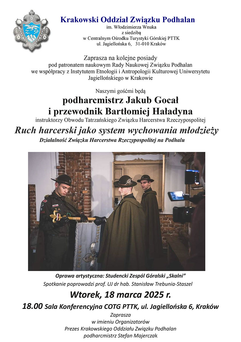 Serdecznie zapraszamy we wtorek 18 marca o godz.18.00 do COTG PTTK (ul. Jagiellońska 6, Kraków) na tradycyjne comiesięczne posiady krakowskiego oddziału ZP.