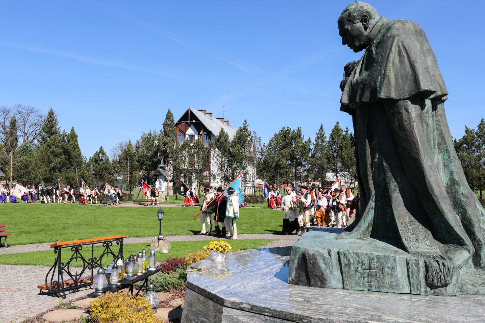 W niedzielny poranek, 27 kwietnia bieżącego roku, członkowie Oddziałów Związku Podhalan zgromadzili się na placu przy Domu Podhalańskim, aby godnie uczcić naszą wiarę, tradycję i pamięć o tych, co odeszli. Po zbiórce, oddziały wraz z pocztami sztandarowymi, w uroczystym przemarszu udali się do Ogrodu Różańcowego w Ludźmierzu, by pod pomnikiem świętego Jana Pawła II złożyć wieńce i zapalić znicze – znak naszej modlitwy i pamięci.