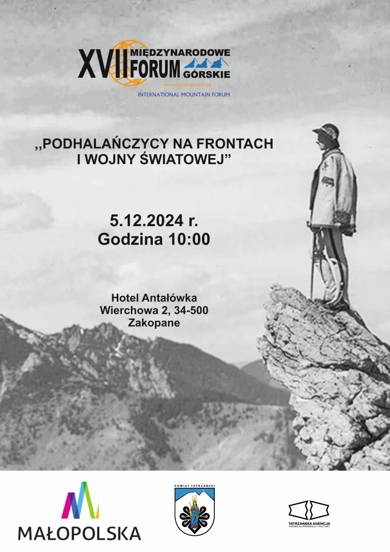 Opis wydarzenia: W 110. rocznicę wybuchu I wojny światowej wracamy pamięcią do mieszkańców Podhala, którzy walczyli na wojennych frontach. W wielu przypadkach pozostali oni tylko cichymi bohaterami, którzy bardzo często nie powrócili do swoich rodzin, domów. Przy okazji tej wyjątkowej rocznicy chcemy przybliżyć sylwetki lokalnych bohaterów oraz zachować o nich pamięć. Serdecznie zapraszamy 5 grudnia o godzinie 10:00 do Hotelu Antałówka w Zakopanem.