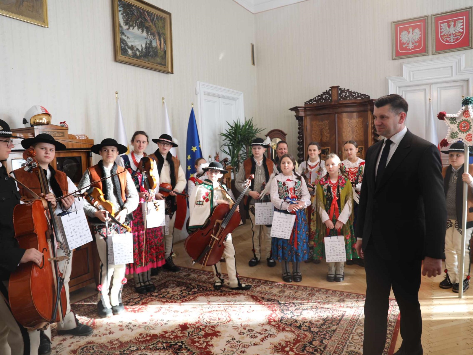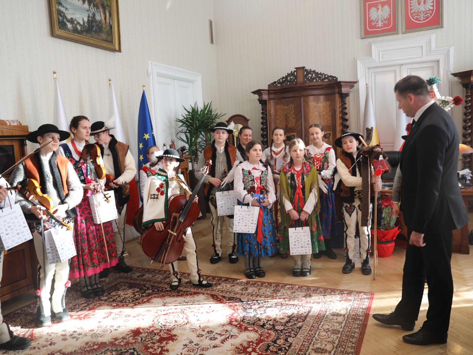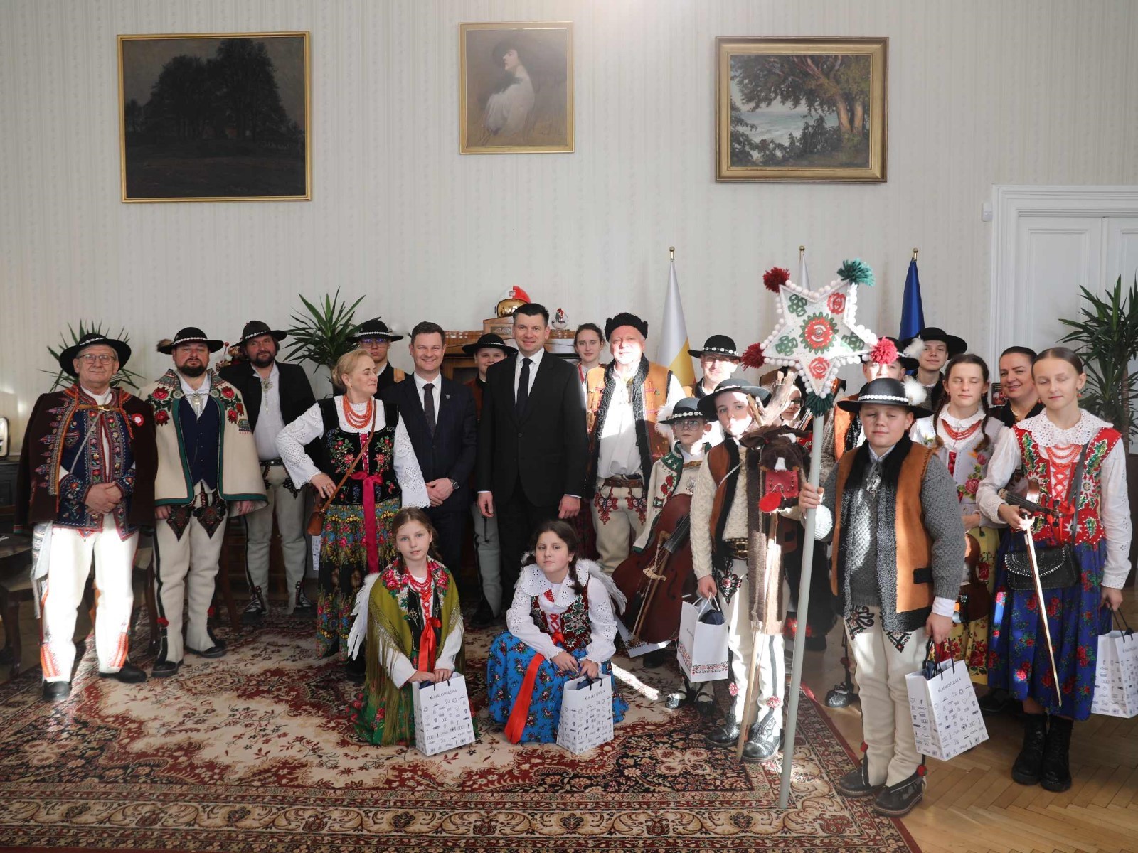 Grudzień, czas świąteczny był okazją do wizyty w Urzędzie Marszałkowskim w Krakowie dużej grupy góralskiej delegacji: przedstawicieli ZP i samorządu z Czarnego Dunajca na czele z Prezesem Janem Habernym i burmistrzem Marcinem Ratułowskim oraz delegacji ZG ZP z Prezesem Julianem Kowalczykiem, wiceprezesem Janina Naporą i sekretarzem Wojciechem Groniem. Wspólnie z dziećmi z regionalnego zespołu 18.12.25r. odwiedziliśmy Marszałka Łukasza Smółkę, były życzenia, nie zabrakło też kolęd i pastorałek góralskich.